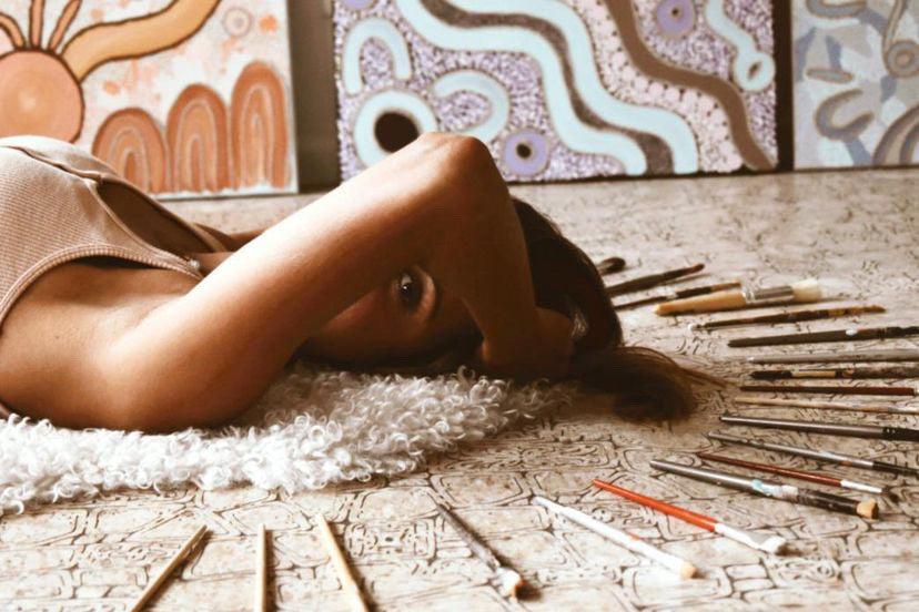 I learnt by doing and watching. I drew inspiration as a little girl watching my mum paint, followed by arriving home from school as a teenager always commenting on how much I loved what she had accomplished throughout the day. I have always been surrounded by Aboriginal art, which in turn gave me the eagerness to practice my own version of traditional dot, lineage and symbolism painting. I have developed my own unique Contemporary Aboriginal art style which incorporates the use of sand (Maloga) in Yorta Yorta language.