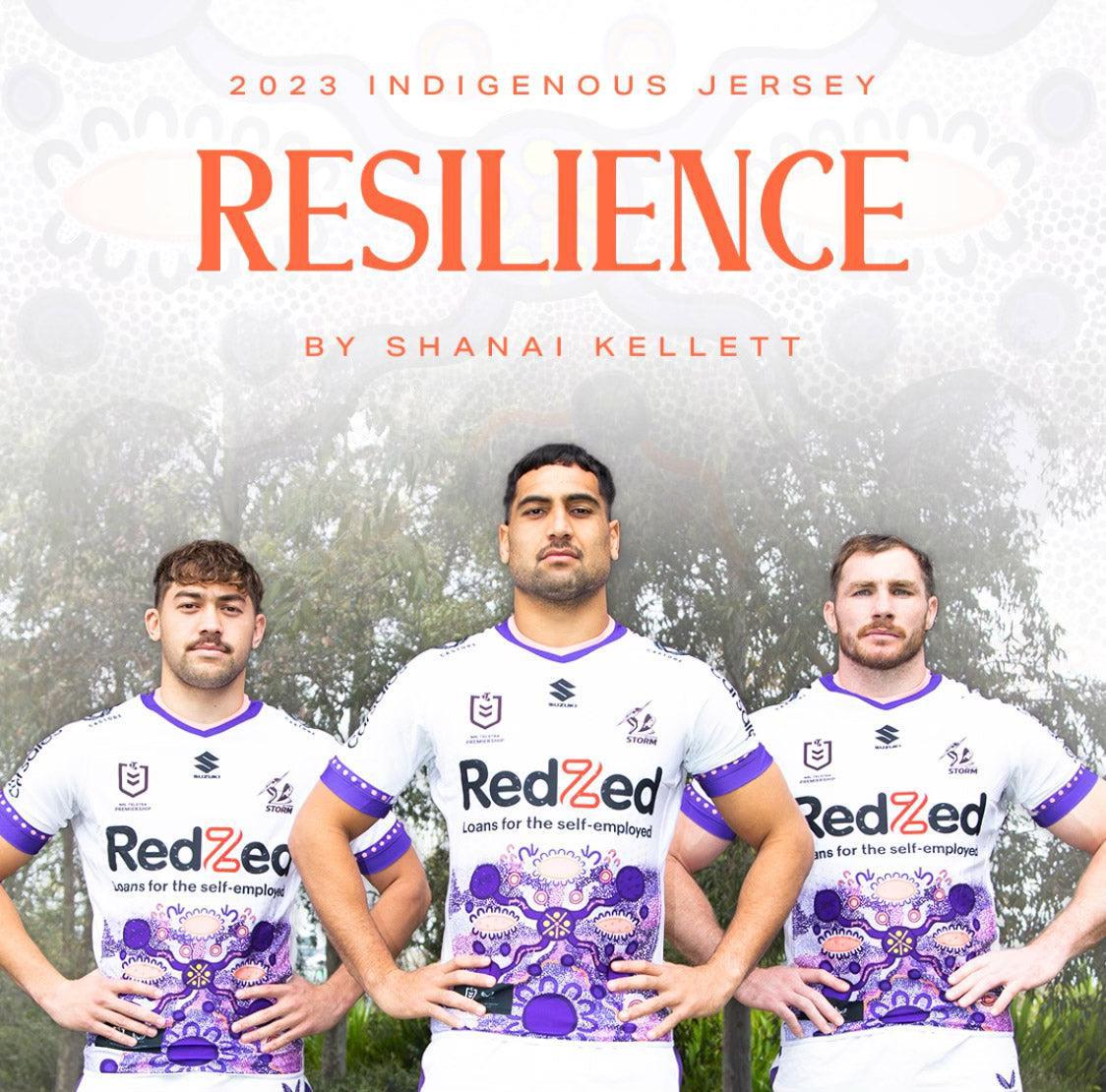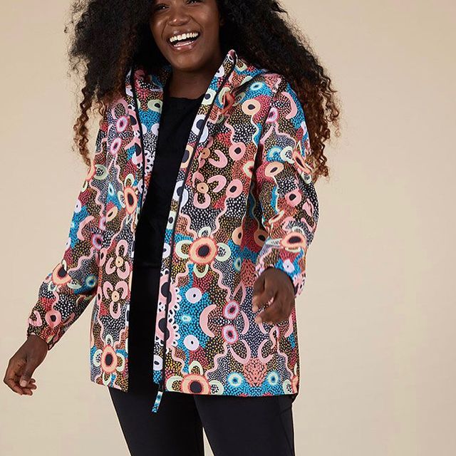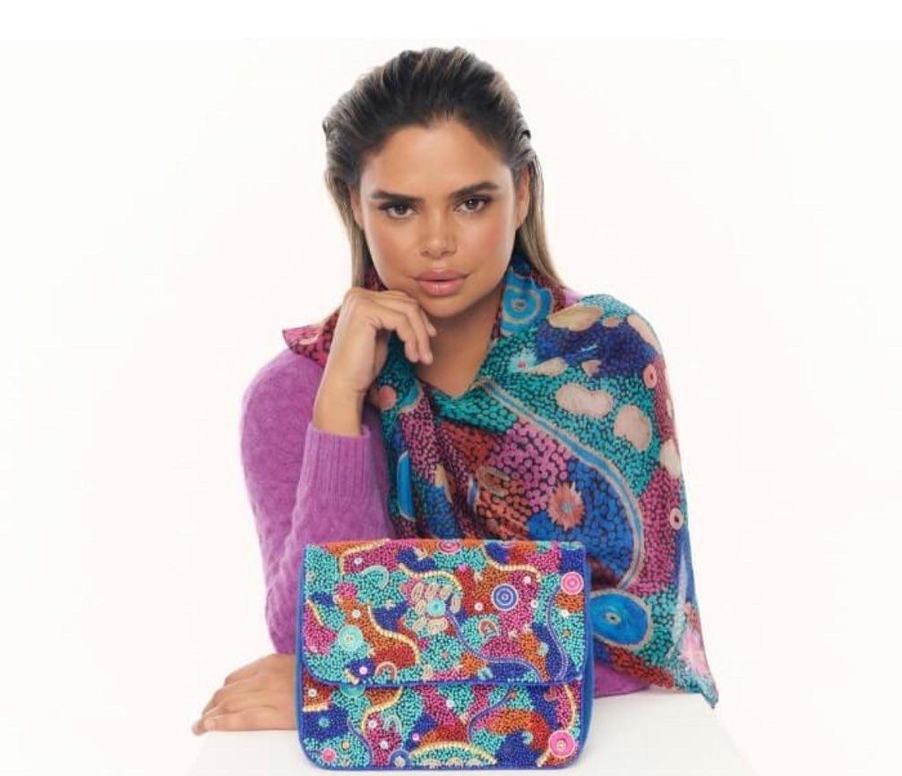 These unions can also bring artwork away from the canvas and onto an array of different medium, to be commemorated, accessorised and worn in the world. This can be seen through collaborations with Amble Outdoors through their “Banksia Forest” raincoats, Blue Illusion X World Vision silk neck scarf and beaded clutch, special events such as Carlton Football Club 2022 Dreamtime Match guernseys and Melbourne Storm 2023 Indigenous Round jerseys.