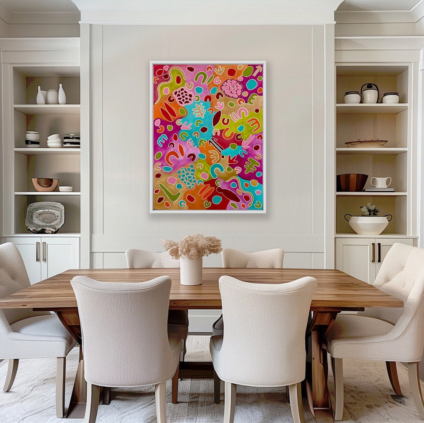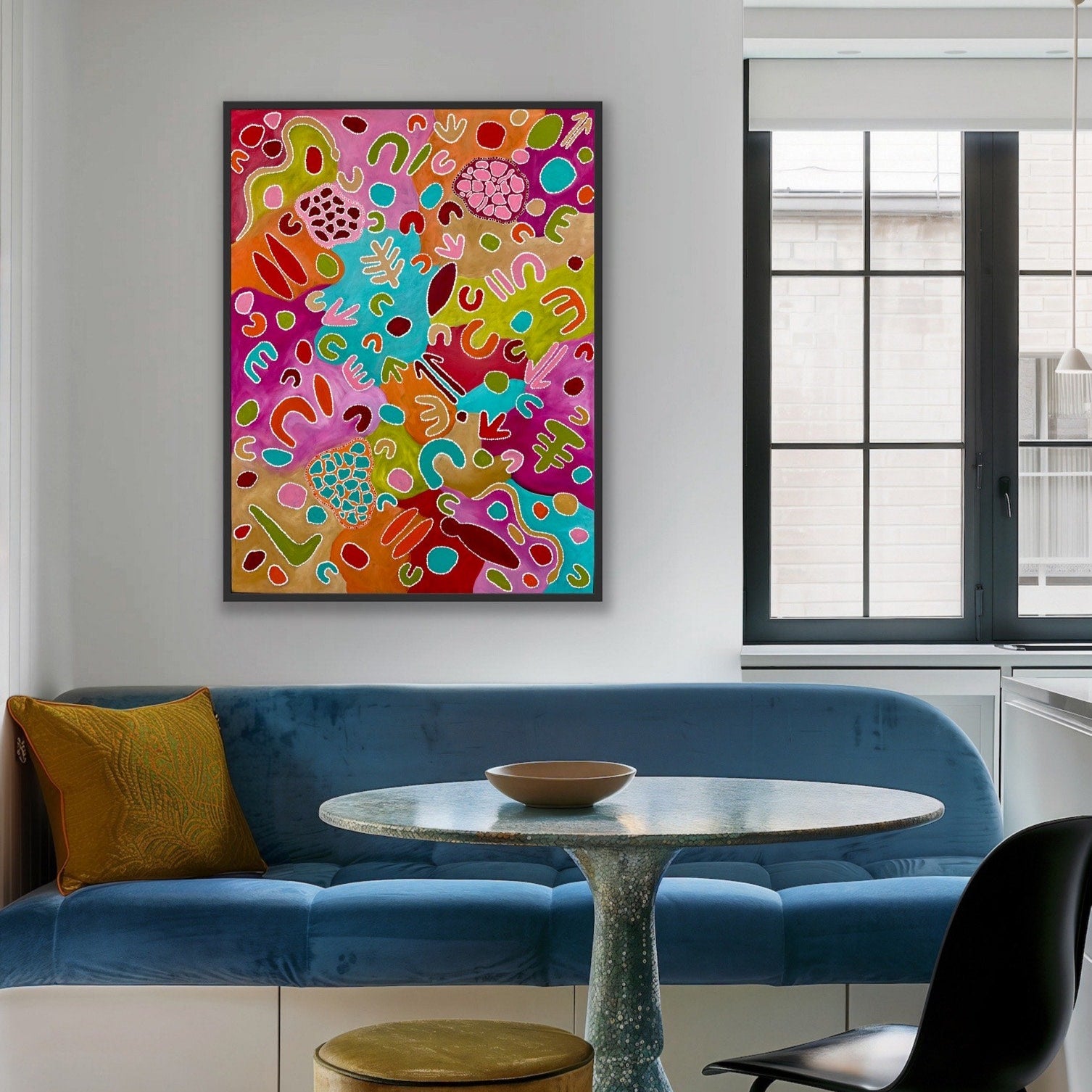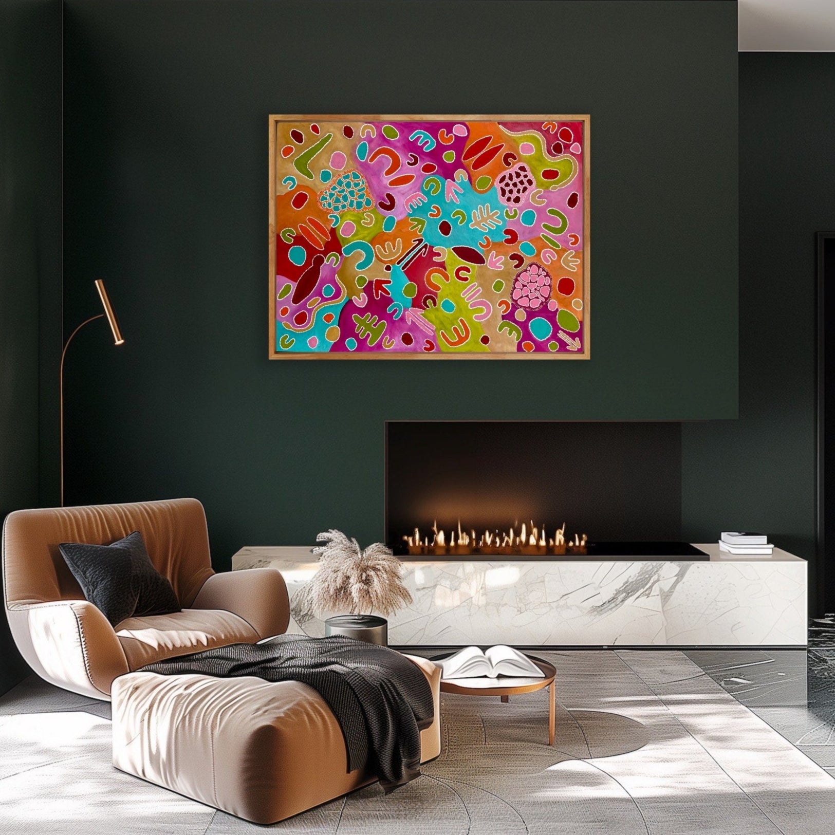 The earthy ochre grounds the piece, reminding us of our deep connection to the land. Through this artwork I invite viewers to reflect on the beauty and significance of our cultural legacy, celebrating the strength that comes from our shared knowledge and traditions.